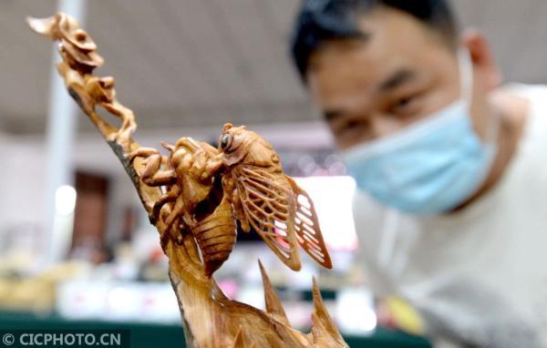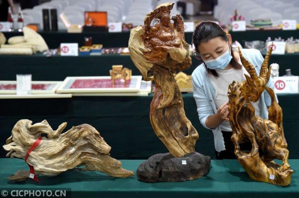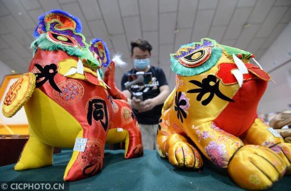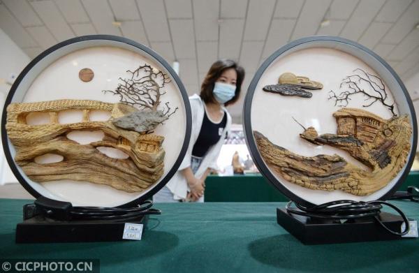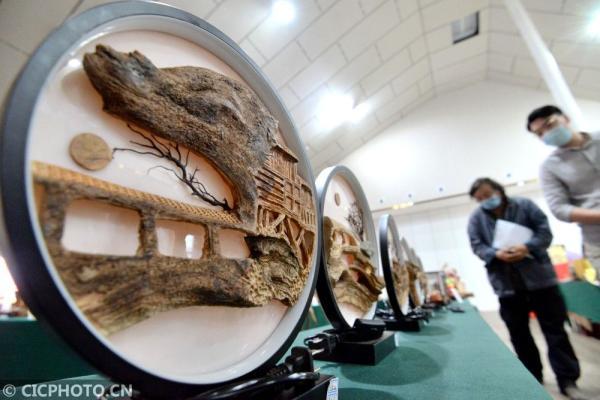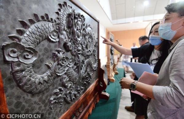以上图片:在“2020年中国·涉县第二届文创和旅游商品创意设计大赛”决赛现场,观众在观看参赛作品。CICPHOTO/郝群英 摄