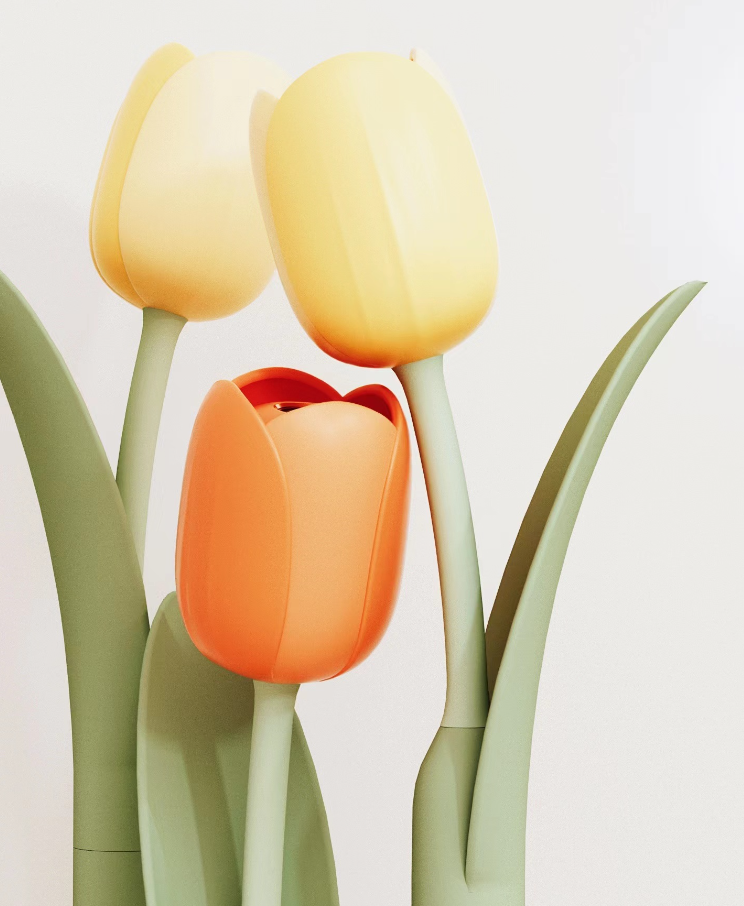 产品介绍:郁金香花内包裹着类似万花筒的结构,花茎部分可以调节方向,最底部则是电池和开关。用此花投影出万花筒的图案,花生花,花生百态。