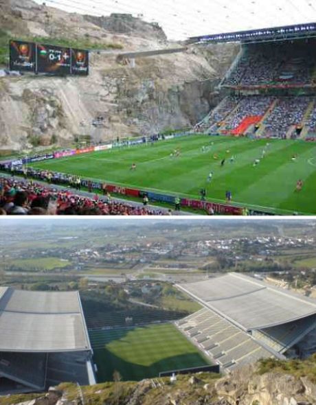 葡萄牙的布拉加体育场拥有一种特殊的美,它建在一个花岗岩采石场,可俯视布拉加城。体育场的一端是富有戏剧性的采石场岩壁,另一端则是下方布拉加城的景色。布拉加体育场是世界上最昂贵的体育场,建造费用高达8310万欧元(约合1.14亿美元),主要都用在运送开凿出的石头上。