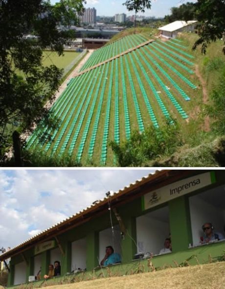 间圭托·马陆赛利(Janguito Malucelli)球场是巴西的第一座生态友好型体育场。在这里,观众并不是坐在金属材料打造的看台上,而是坐在山坡的一排排座椅上。体育场使用的所有木料都是通过回收得来,目的就是避免森林砍伐。此外,整座体育场在建造中没有使用一滴混凝土。