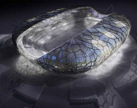 北京国家体育场通常被人称之为“鸟巢”,是2008年北京夏季奥运会的一种标志。这是一个令人吃惊的建筑设计,利用了对中国陶瓷工艺的研究,与世界上其他任何体育场截然不同。“鸟巢”的骨架采用十字交叉的钢梁,不对称设计让它显得格外突出。